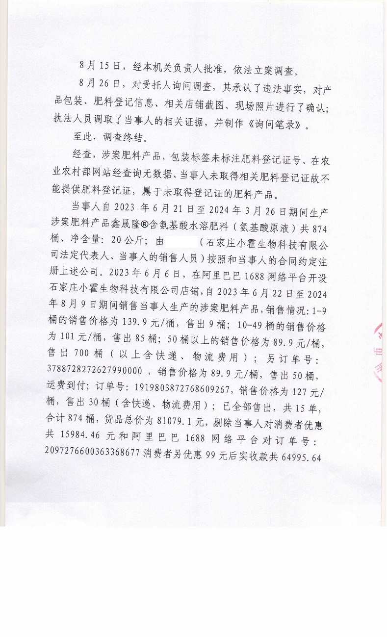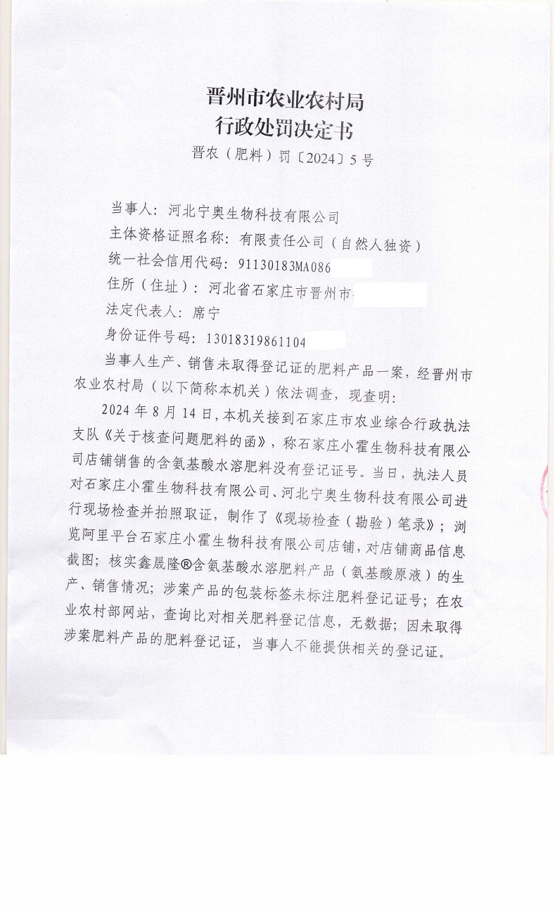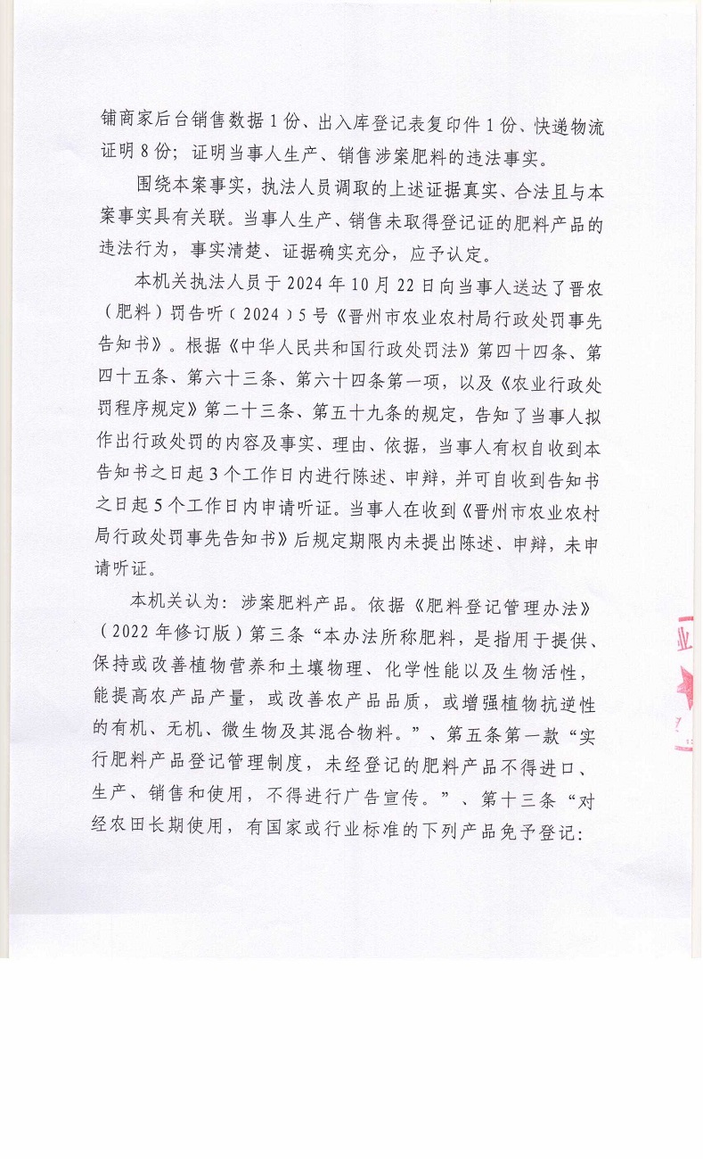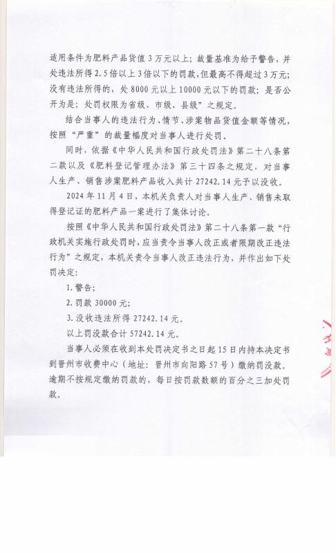 晋农(肥料)罚〔2024〕5号