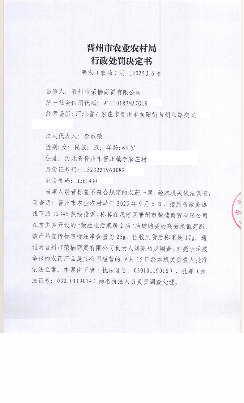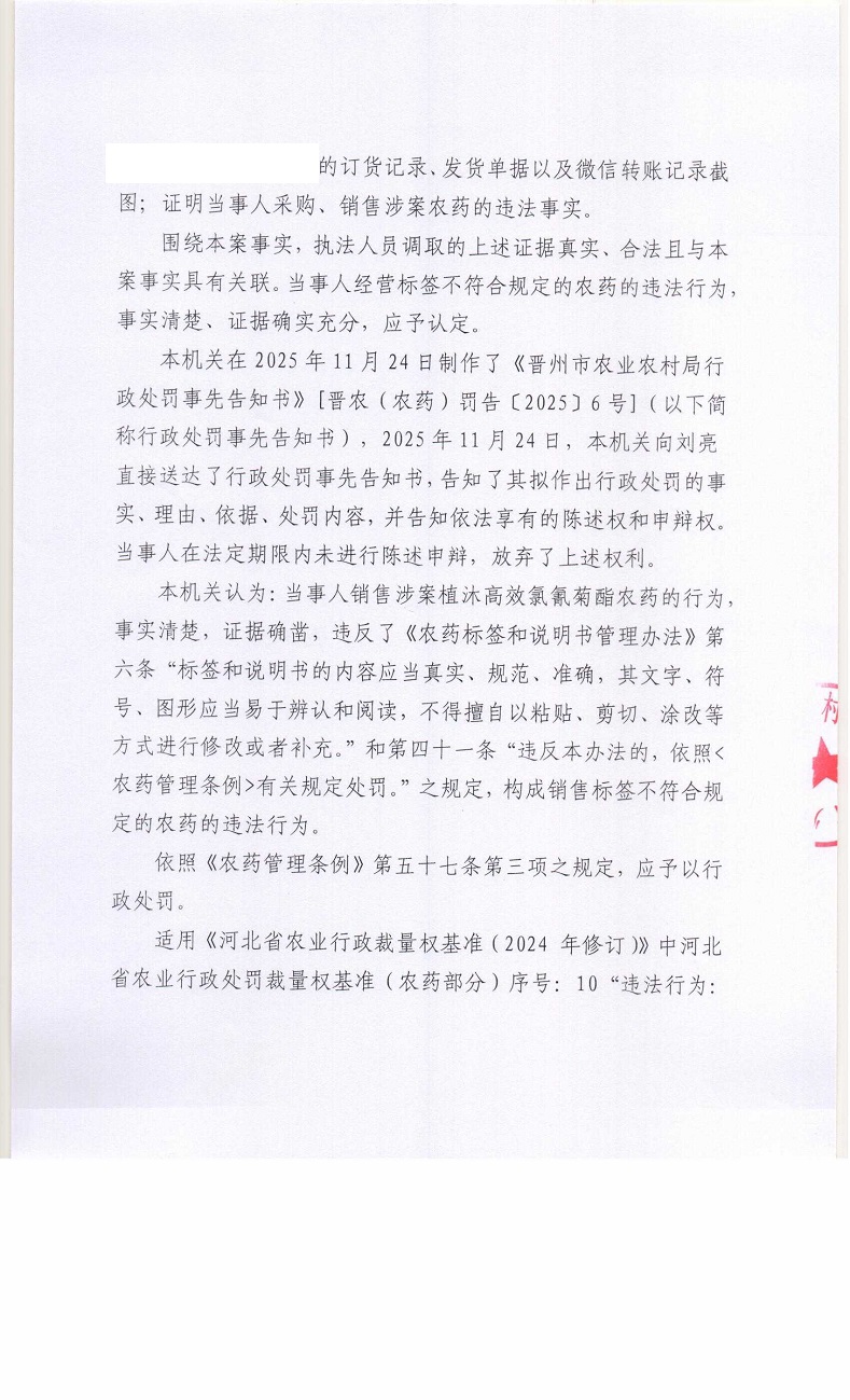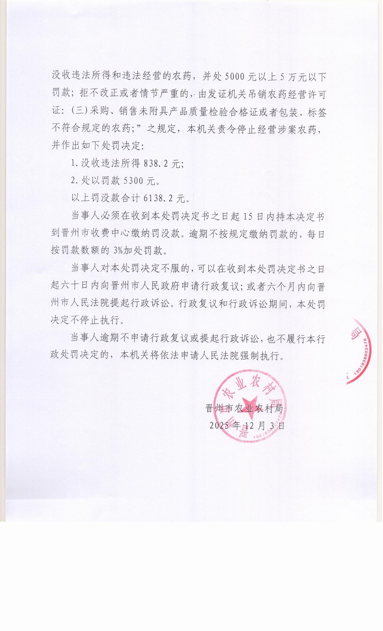 晋农(农药)罚[2025]6号