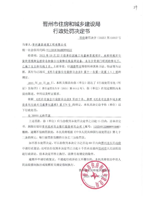 晋州市嵩磊建筑工程有限公司违反相关扬尘治理规定案 晋住建罚决字[2025]第01012号