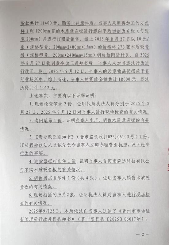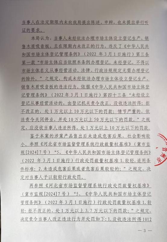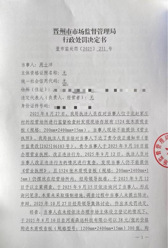 周士洋未经依法办理市场主体设立登记生产销售木质吸音板案