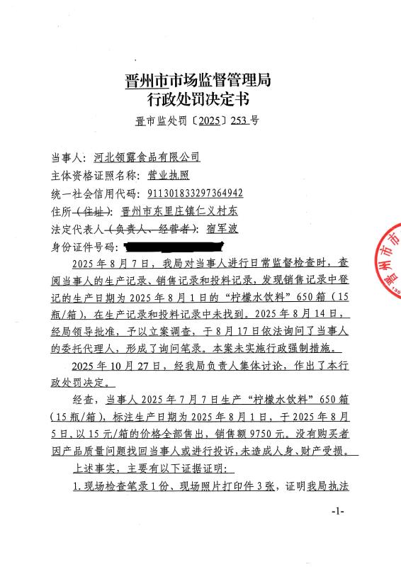 河北领露食品有限公司涉嫌生产经营标注虚假生产日期的食品案