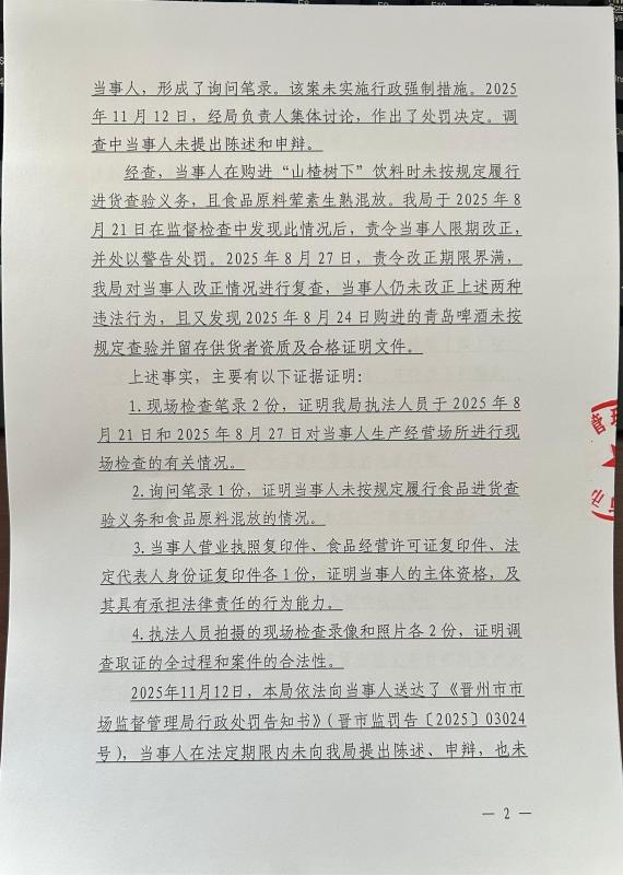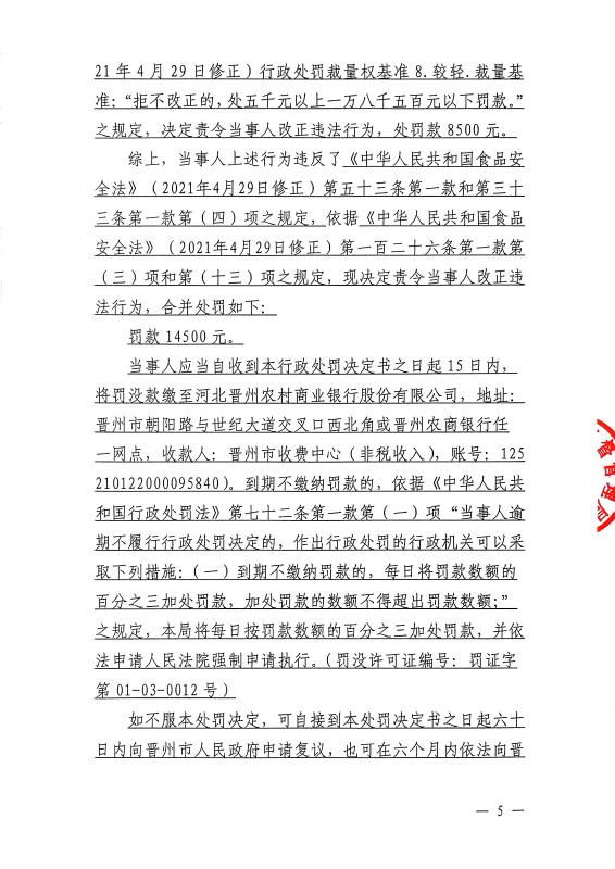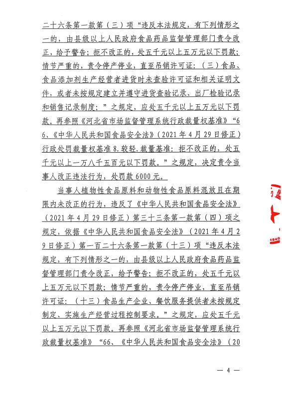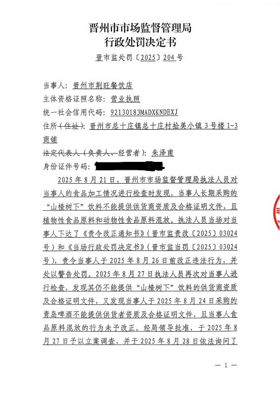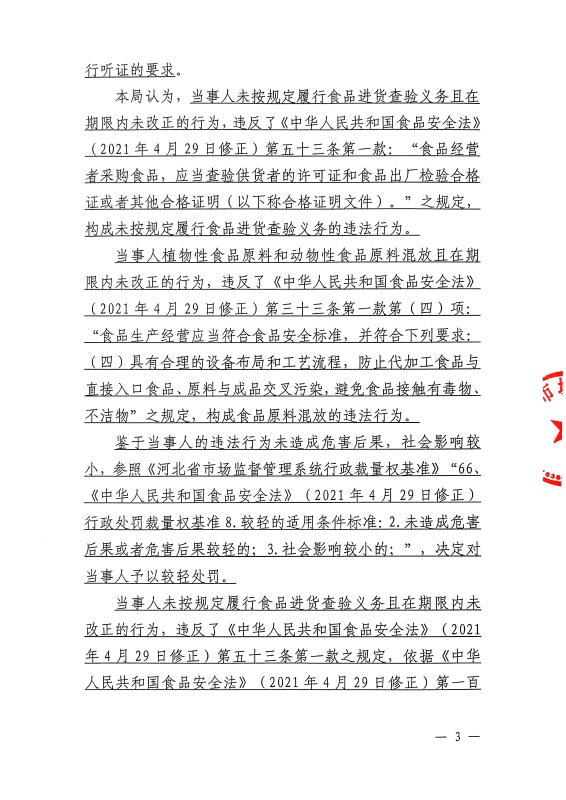晋州市荆旺餐饮店未按规定履行进货查验义务和食品原料混放案
