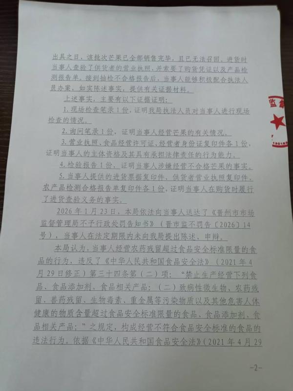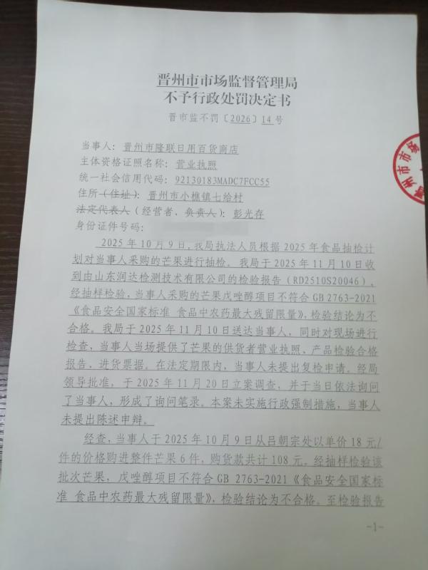 晋州市隆联日用百货商店经营农药残留超过食品安全标准限量的食品案