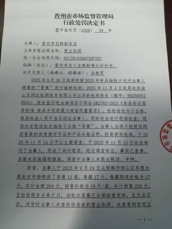 晋州市百鲜副食店经营不符合食品和未查验供货者的许可证和产品合格证明文件案