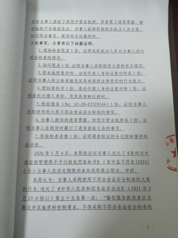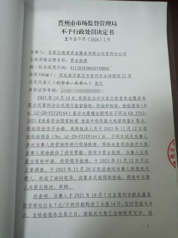 石家庄德爱养老服务有限公司晋州分公司采购使用不符合食品安全标准的大葱案