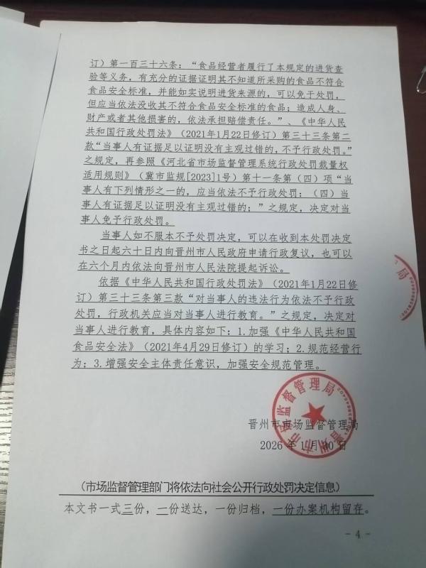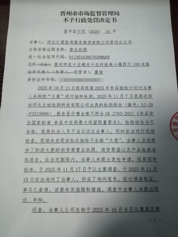 河北仁爱医养服务集团有限公司晋州分公司经营不符合食品安全标准的食品案