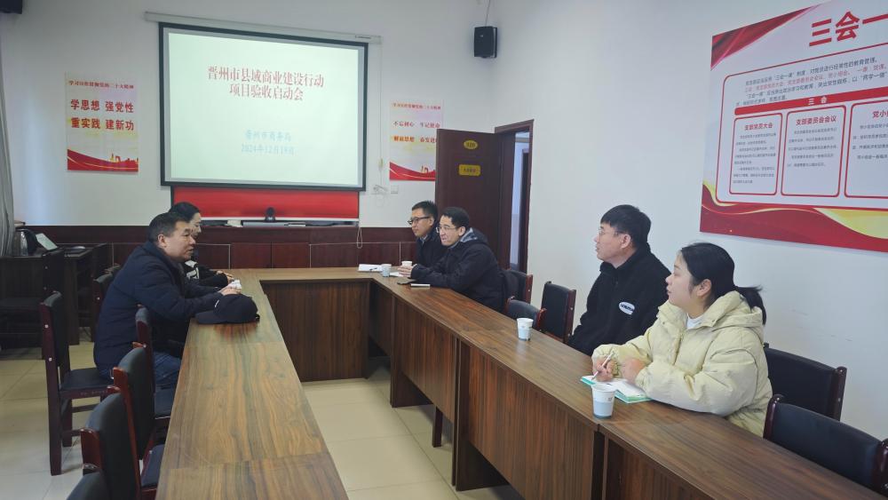 晋州市县域商业建设行动项目支持升级改造乡镇商贸中心10个、县级物流配送中心1个,目前建设已完成,已于2024年12月19日在晋州市商务局三楼会议室召开项目验收启动会。