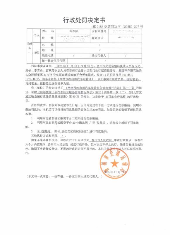 冀0183交罚罚决字〔2025〕207号