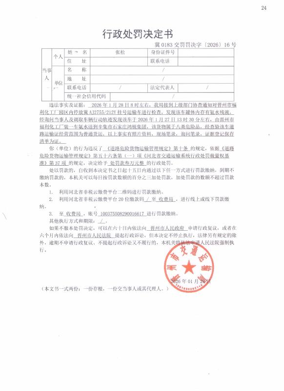 冀0183交罚罚决字〔2026〕16号