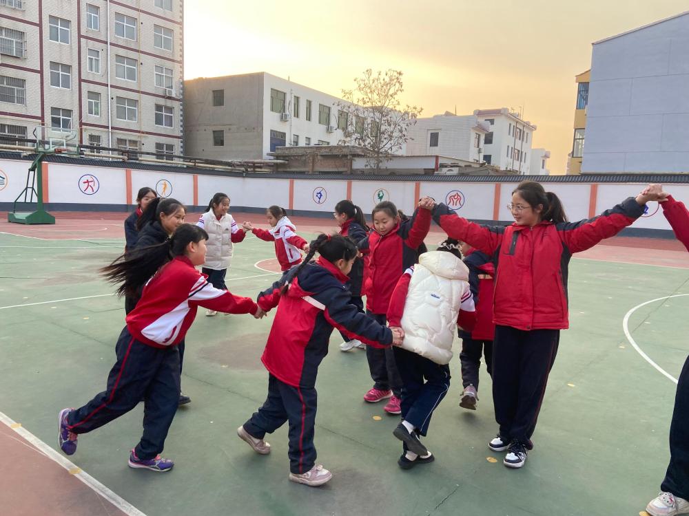 “兔子舞”跳出青春韵律、“龙旋风”搅热运动热潮、“钻山洞”穿梭协作隧道、“桃花朵朵开”绽放友谊之花、“贪吃蛇”蜿蜒欢乐轨迹、“萝卜蹲”开启萌趣竞赛……冬日融融,活力无限,这方课间天地,是活力充电站、成长助推器,孩子们在游戏中收获快乐、健康与成长,每帧画面皆为校园最美注脚,去跳跃,去欢笑,去会每一颗驿动的童心,去留住不可复见的童年时光。