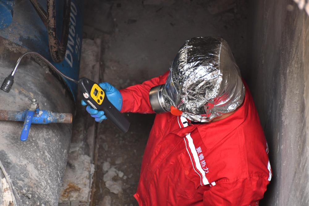 随着应急预案的启动,各工作组迅速到位,分工明确,第一时间设置安全警戒区,放置警戒线、警示标识。抢修人员在井口做有害气体监测;作业人员佩戴安全带、安全帽、防毒面罩等防护装置下井处置;井口设置监护人员,与作业人员保持不间断有效沟通,实时掌握井下情况。